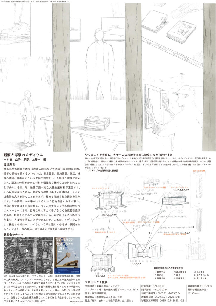 2025年東京都美術館主宰の美術展。二組の建築チーム(伊藤聡宏設計考作所、SMAスタジオメガネ)共同で、ギャラリーBの設計とコンテンツデザインを担当。